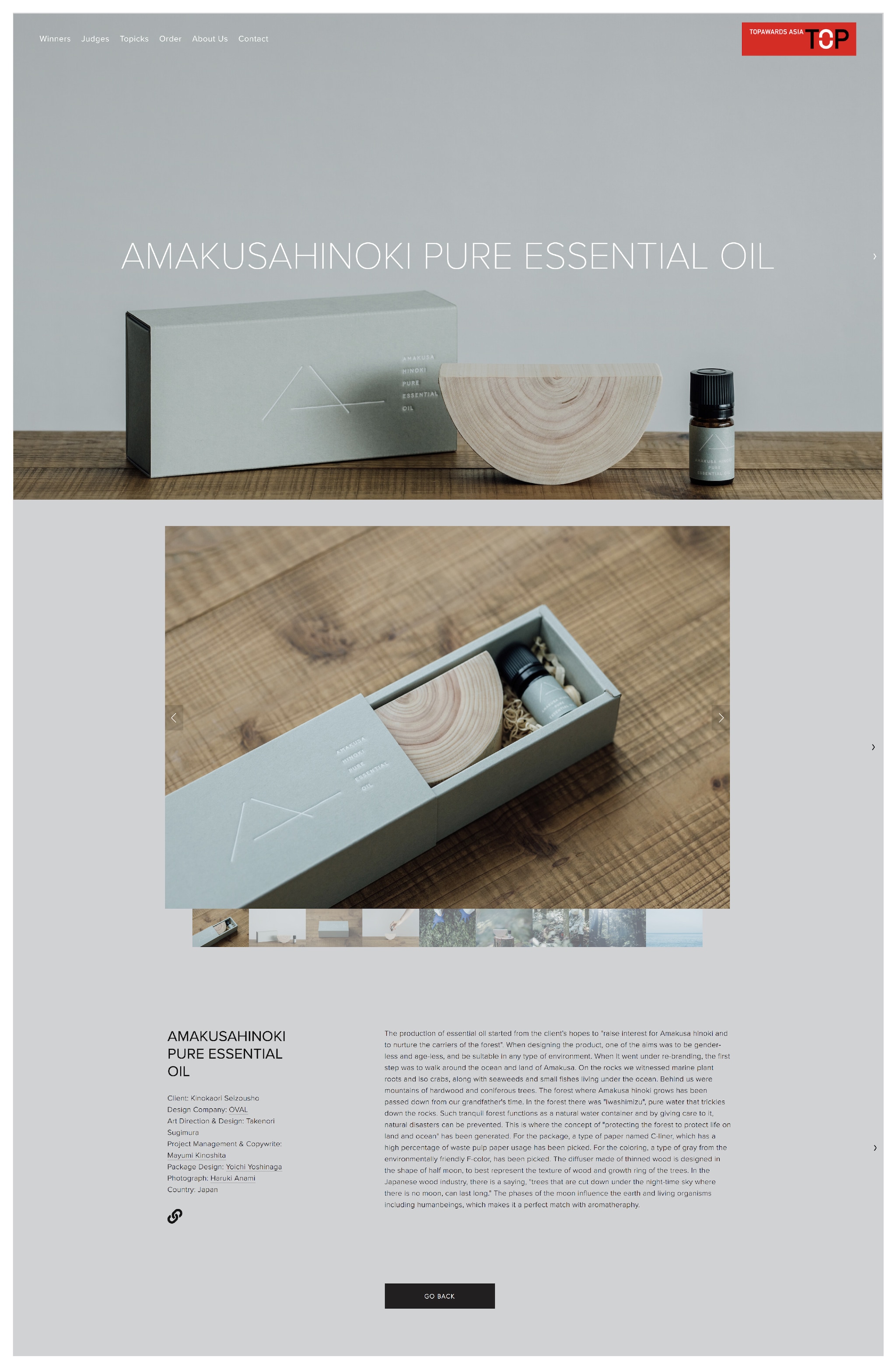 おかげさまで「AMAKUSA HINOKI PURE ESSENTIAL OIL」が、アジアを対象とした優れたパッケージやデザインに贈られる賞「トップアワードアジア」を受賞しました!