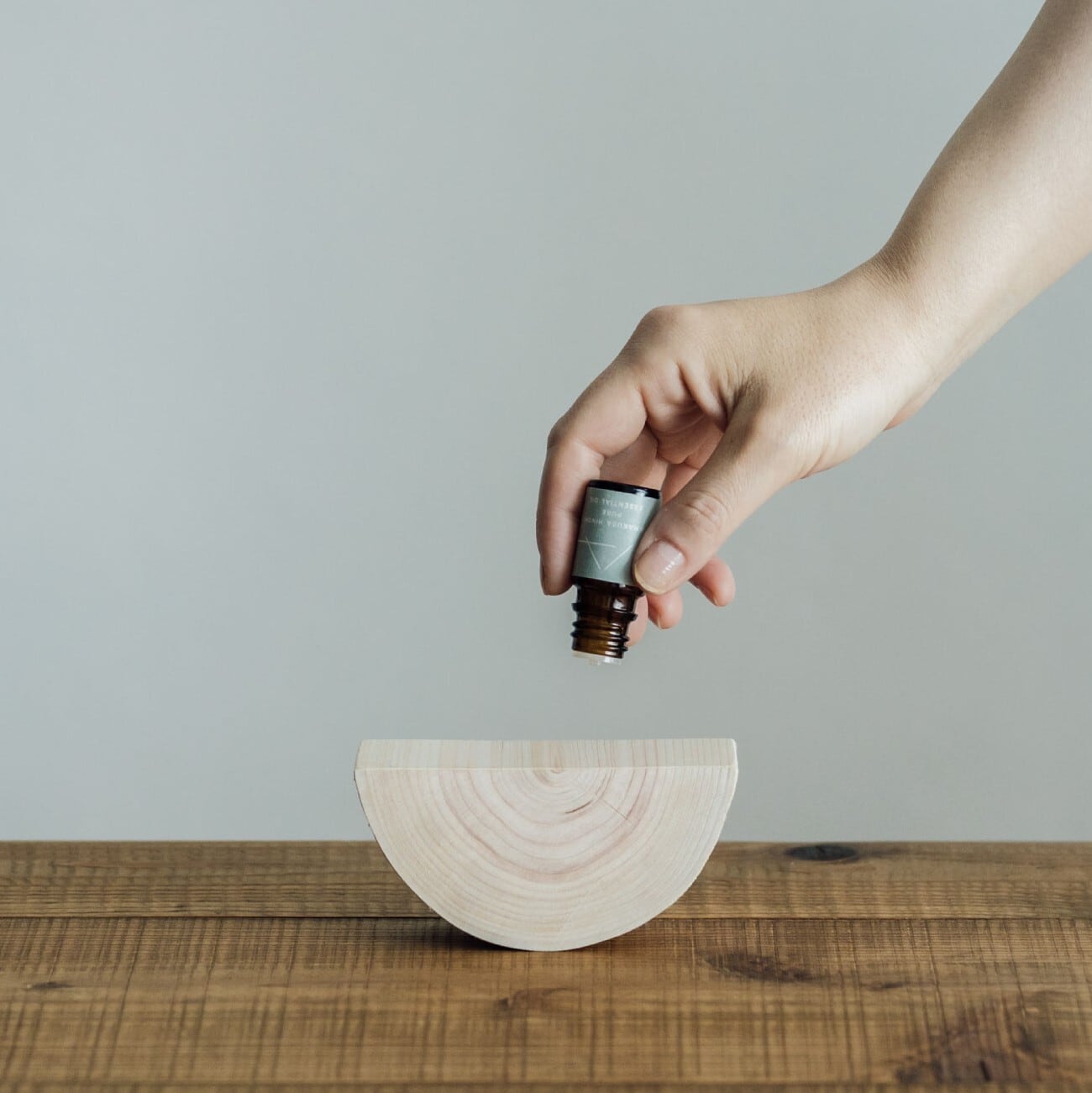 ・付属の「ヒノキのディフューザー」にオイルを数滴たらして、就寝時の枕元に、デスクワークのパソコンの横に置いて香りをお楽しみください。