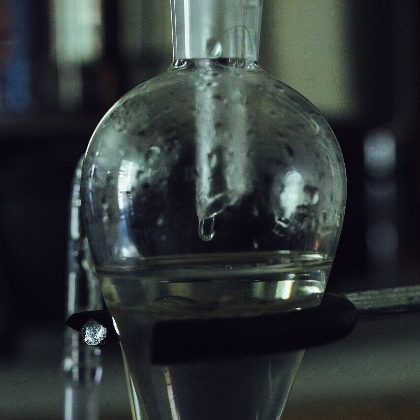 そんな思いから、天草ヒノキの枝葉の部分から水蒸気蒸留法でエッセンシャルオイル(精油)と芳香蒸留水を抽出しました。蒸留する際の水は、天草のパワースポット「百貫様」という巨大な石の際から湧き出る水を使用しています。採れる量は、6時間蒸留して材料の1%前後しか採れません。